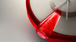 Orologio da tavolo con bottiglietta di Campari Soda. L’orologio Senza Fretta è uno dei tre oggetti della “Design Connection” di Campari Soda, collezione che ha reso omaggio all’iconica bottiglietta del brand, disegnata da Fortunato Depero nel 1932.